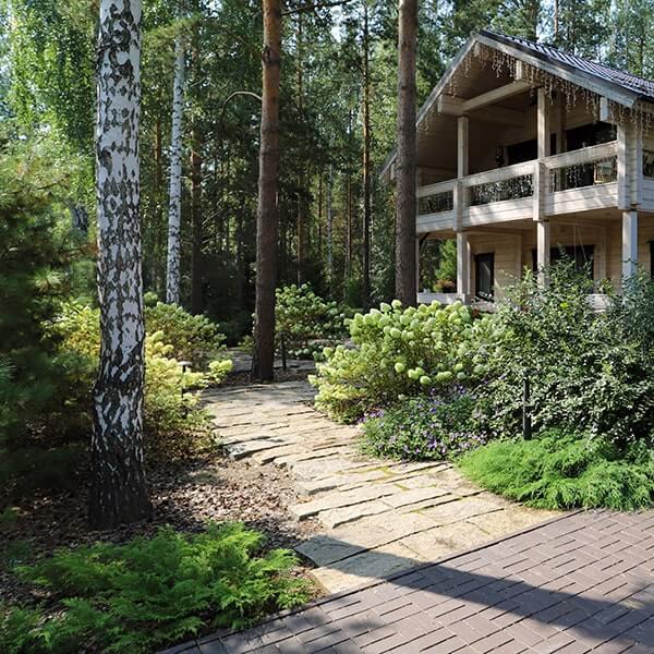 Основные работы закончены. Вся свободная от посадок поверхность выглядит однородным гравийным покрытием. Кажется, что никаких дорожек нет, а это и значит, что «дорожек» нет. Ходить можно везде, но там, где ходить имеет смысл сколько-нибудь часто, это делать очень удобно. Маршруты заданы выходами из строений и подсказаны расположением растительных куртин. «Вы можете ходить, где хотите, — сказали мы заказчикам. — Но хотеть ходить вы, вероятно, будете там, где мы задумали».